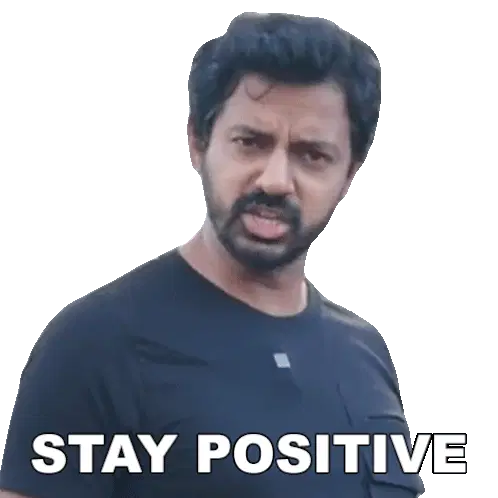 A vibrant animated sticker from Omer Studios featuring the text "Happy thought" with a colorful rainbow gradient fill.