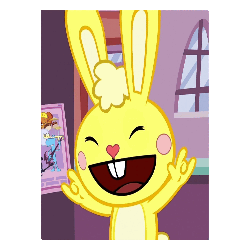a cartoon rabbit is smiling with his eyes closed