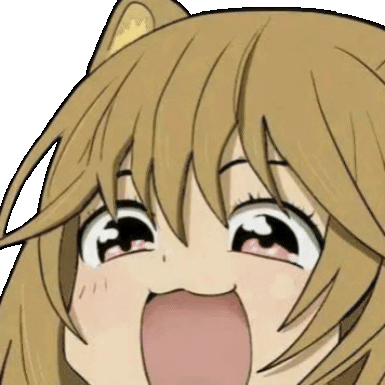An excited anime girl with cat ears and a wide-open mouth, showing extreme happiness or surprise in this weeb sticker.