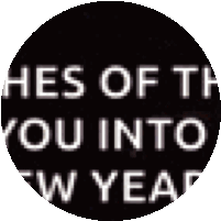 A circular sticker featuring a partial message of 'Wishes of the New Year' in white text on a black background, perfect for New Year's greetings.