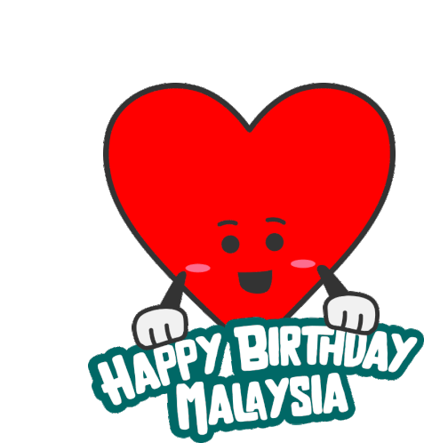 A cute heart character celebrates 'Happy Birthday Malaysia' for Hari Kebangsaan, presented by Caring Pharmacy.