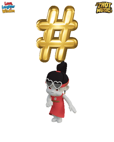 a cartoon character is dancing in front of a gold hashtag sign that says " love laughter wisdom "