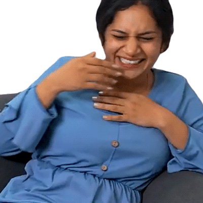 Hasna Sayali Sonule laughs heartily, covering her mouth in amusement. A genuinely funny moment.