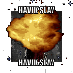 A pixel art explosion animation featuring the text "HAVIK SLAY" from Mortal Kombat, perfect for expressing a powerful moment.