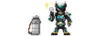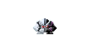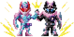 a pixel art of a robot with purple smoke coming out of it 's chest