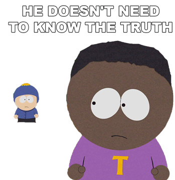 Tolkien Black from South Park reacts with concern, implying a secret should be kept from someone.