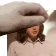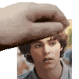 An animated pixel art sticker featuring a hand gently patting the head of Ethan Landry from the Scream franchise.