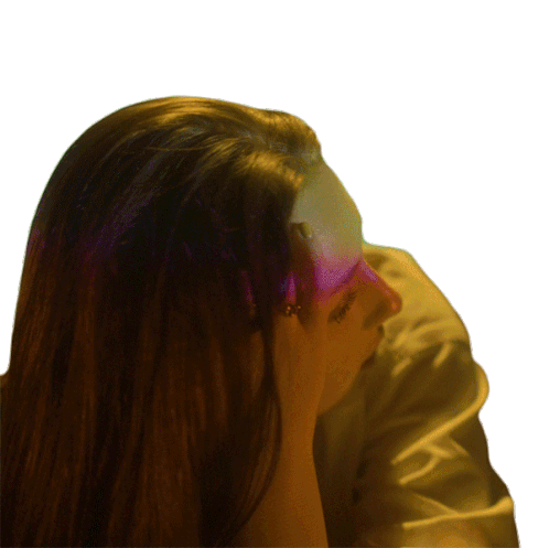 Ashley Kutcher looking stressed and thoughtful, resting her head on her hand, possibly with a headache.