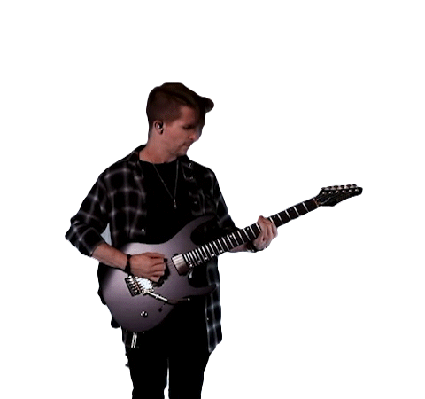 Cole Rolland delivers an energetic performance, headbanging passionately while shredding on his electric guitar.