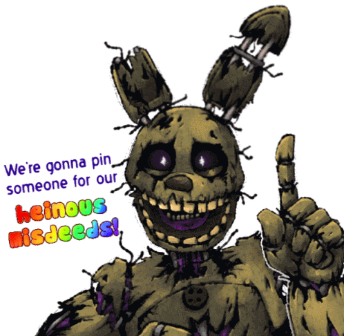 a drawing of a bunny with the words we 're gonna pin someone for our heinous misdeeds written below it