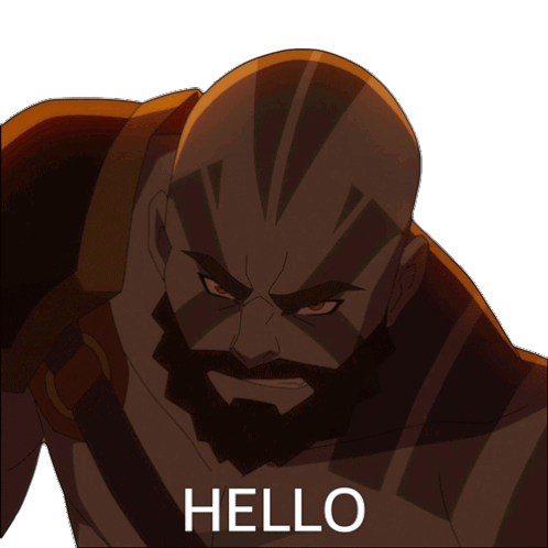 Grog from The Legend of Vox Machina greets with a friendly "Hello" in this animated sticker.