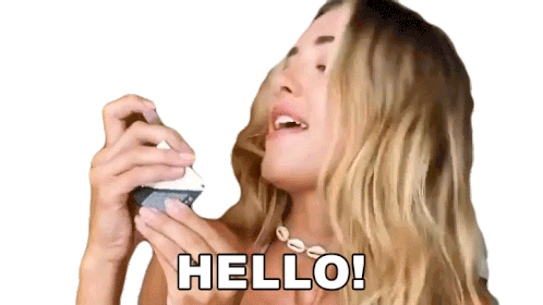 Jessica Serfaty, with her blonde hair and a shell necklace, smiles and says 'Hello!' while holding a small box.