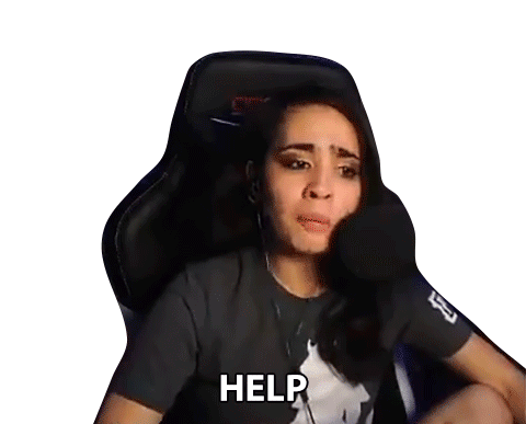 Katharine Conti urgently calls for help, expressing distress with an open mouth and the word 'HELP' displayed.