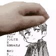 Hetalia Scotland depicted in charming pixel art, with a hand gently holding the character's head.