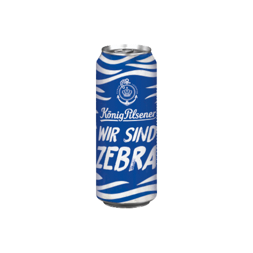 a blue can of konig pilsener wir sind zebra beer