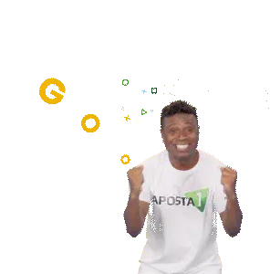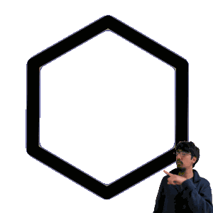 a man is pointing at a yellow hexagon with a white background