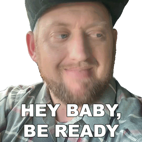 Dj Hunts, a man with a beard and hat, says 'Hey Baby, Be Ready' with a playful and confident expression.