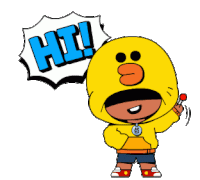 Brawl Stars character Leon in his Sally skin waves hello with a cheerful 'HI!' speech bubble and smoke effects.