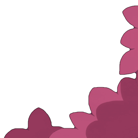 Puppycat from Bee and Puppycat peeks out from behind a fluffy pink cloud, looking suspicious or grumpy.