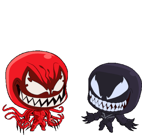 Chibi Venom and Carnage characters in an energetic high-five or clash, showing their frenemy dynamic.