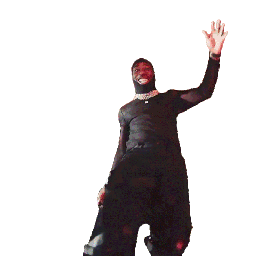 Burna Boy, wearing a black outfit and gold chain, performs a dynamic high kick with a joyful smile.