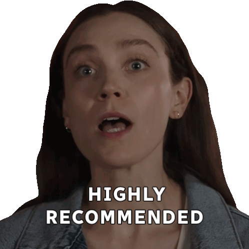 Alanna Bale as Mackenzie with a surprised expression, enthusiastically recommending something with the text 'HIGHLY RECOMMENDED'.