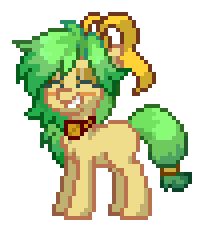 a pixel art pony with green hair and a bow tie