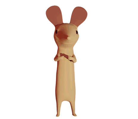 Hiiruthemouse, the animated mouse, performs a series of calm, funny, and serene movements, resembling Tai Chi or a moving meditation.