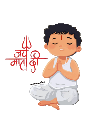 a cartoon of a boy sitting in a lotus position with a trident and the words " जय माता दी " behind him