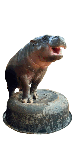 a statue of a hippopotamus standing on top of a tire