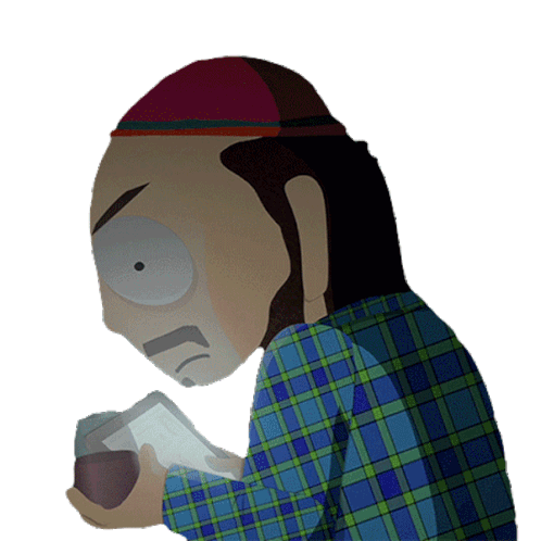 Gerald Broflovski from South Park, holding a phone with a bright light, looks angry and hisses.