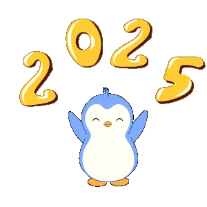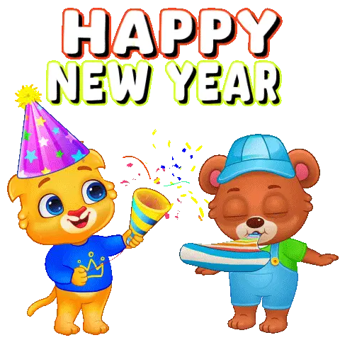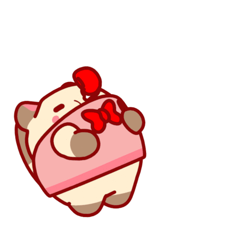 A cute cat character in a pink and blue hanbok performs a traditional Korean New Year bow, wishing good fortune.
