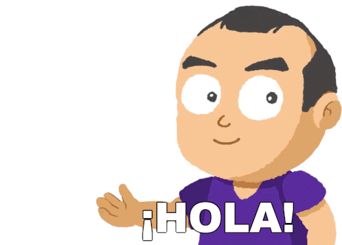 The Curiosamente character waves and says '¡Hola!' in a friendly greeting, perfect for starting conversations.