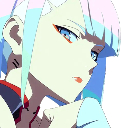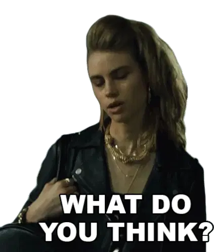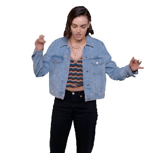 Lucy, wearing a denim jacket, gestures with her hand, indicating "hold on a second" or "wait a minute."