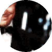 A highly blurred and pixelated abstract image, possibly a person or object, with dark and light elements.