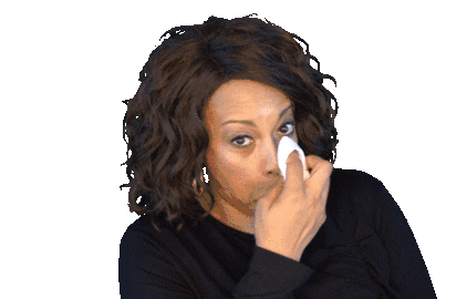 Holly Logan, the comedian, wiping away tears while laughing hysterically, expressing extreme amusement and joy.