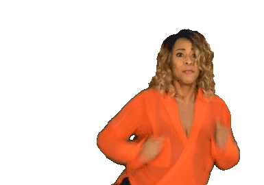 Holly Logan energetically dances, moving her arms and body with a confident and happy expression.