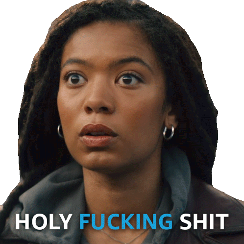 Marie Moreau (Jaz Sinclair) reacts with wide eyes and an open mouth, displaying "HOLY FUCKING SHIT".