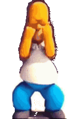 Homer Simpson dances with his hands covering his eyes in this pixelated, transparent animated sticker.