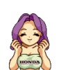 Happy Honda Girl in pixel art style, wearing a Honda tube top and expressing excitement with raised hands.