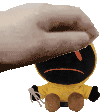 A hand gently pets Hoodie, the distressed character from Marble Hornets, who has large white eyes and a cracked head.