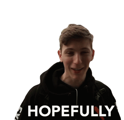 a young man is smiling in front of a white background that says hopefully
