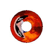 Horacio La Rata Nocturna and Horacio Lrn in a bugged, fiery donut loop, with a blue figure rotating inside.