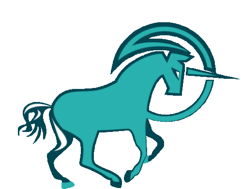 A vibrant teal stylized horse, possibly a unicorn, with a sharp horn and flowing mane, representing the Uniqhorse brand.