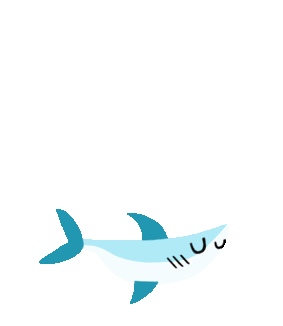 A cute, chill cartoon shark with closed eyes and a gentle smile swims peacefully, perfect for a hot summer day.