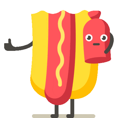 Animated hotdog character gives a thumbs up while holding a friendly ketchup bottle. Perfect for expressing approval or a good mood.