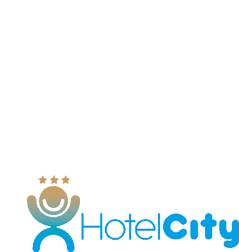 Animated logo for Hotel City Rimini, featuring a stylized person with stars, representing family travel and vacations in Italy.