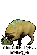 A pixel art Houndeye from Half-Life eating grass, accompanied by the text 'ambient_npc_manager'.
