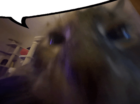 a blurred image of a person 's face with a speech bubble above it