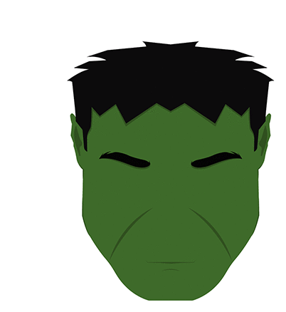a cartoon drawing of the hulk 's face with black hair